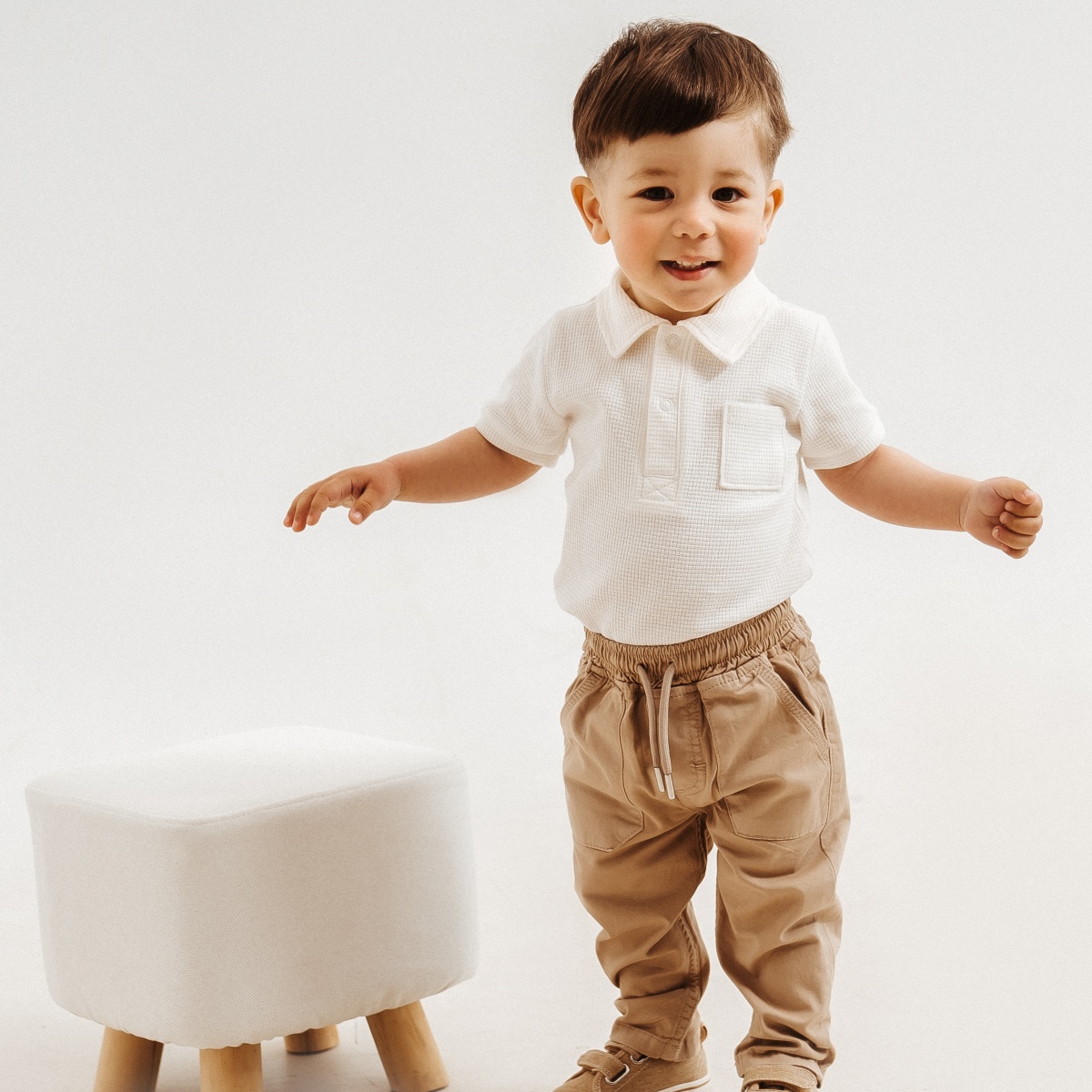 Брюки в повседневном стиле. Модель с эластичным поясом на резинке обеспечивает комфортную посадку и удобство в течение дня. Дополнительная регулировка шнурком позволяет легко подогнать брюки по талии. Спереди расположены два накладных кармана с декоративной строчкой. Выполнены из плотного хлопкового материала, приятного к телу и износостойкого.