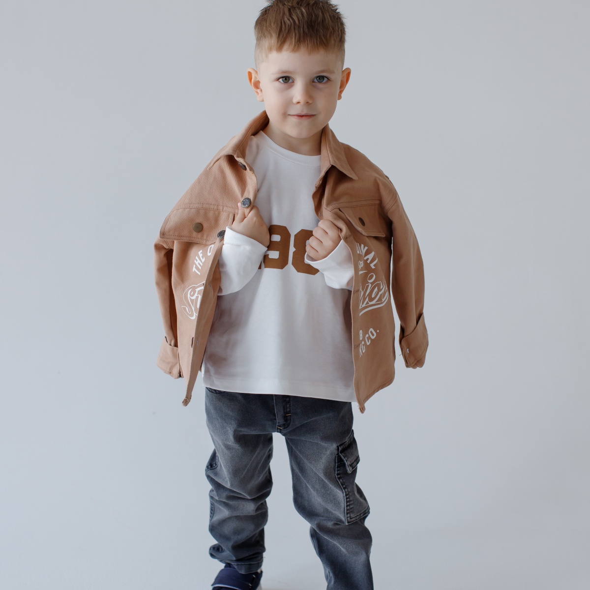 Un costum de copii pentru un baiat este o alegere ideala pentru toamna, primavara si vara. Este format dintr-o cămașă, tricou și pantaloni din denim. Cămașă și tricou cu mâneci lungi.